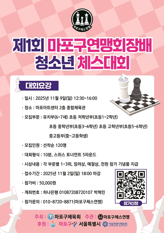 | 2025 경기도 체스연맹 회장배 올림피아드 대회 (0) | 2025.10.28 |